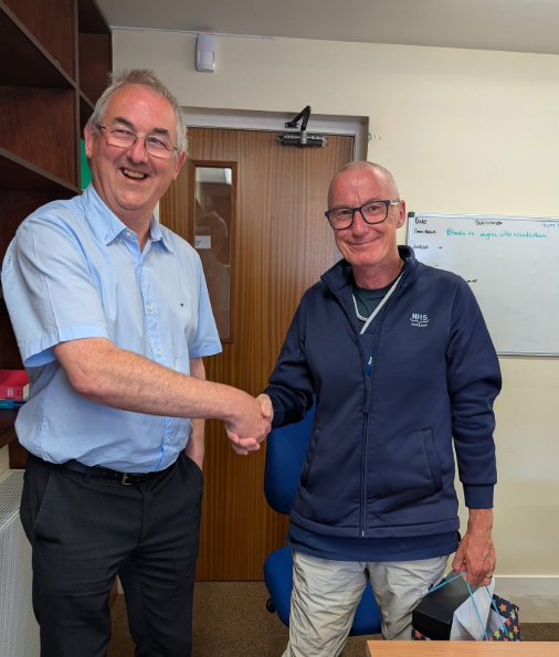 On Friday 22nd August, we said goodbye to our Paramedic Practitioner, Ally. Ally had been employed with the surgery for 7 years and is off to enjoy his retirement. Here he is being presented with his leaving gifts from GP Partner, Dr Watt. We wish you all the best Ally!