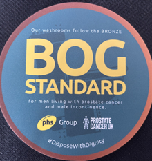 We are now a Bronze Certified Bog Standard Practice from phs Group, in conjunction with Prostate Cancer UK. We provide male incontinence bins in our disabled toilet which are specifically designed for the disposal of incontinence products. This ensures men have access to washroom spaces where they can dispose of their waste discreetly and hygienically.